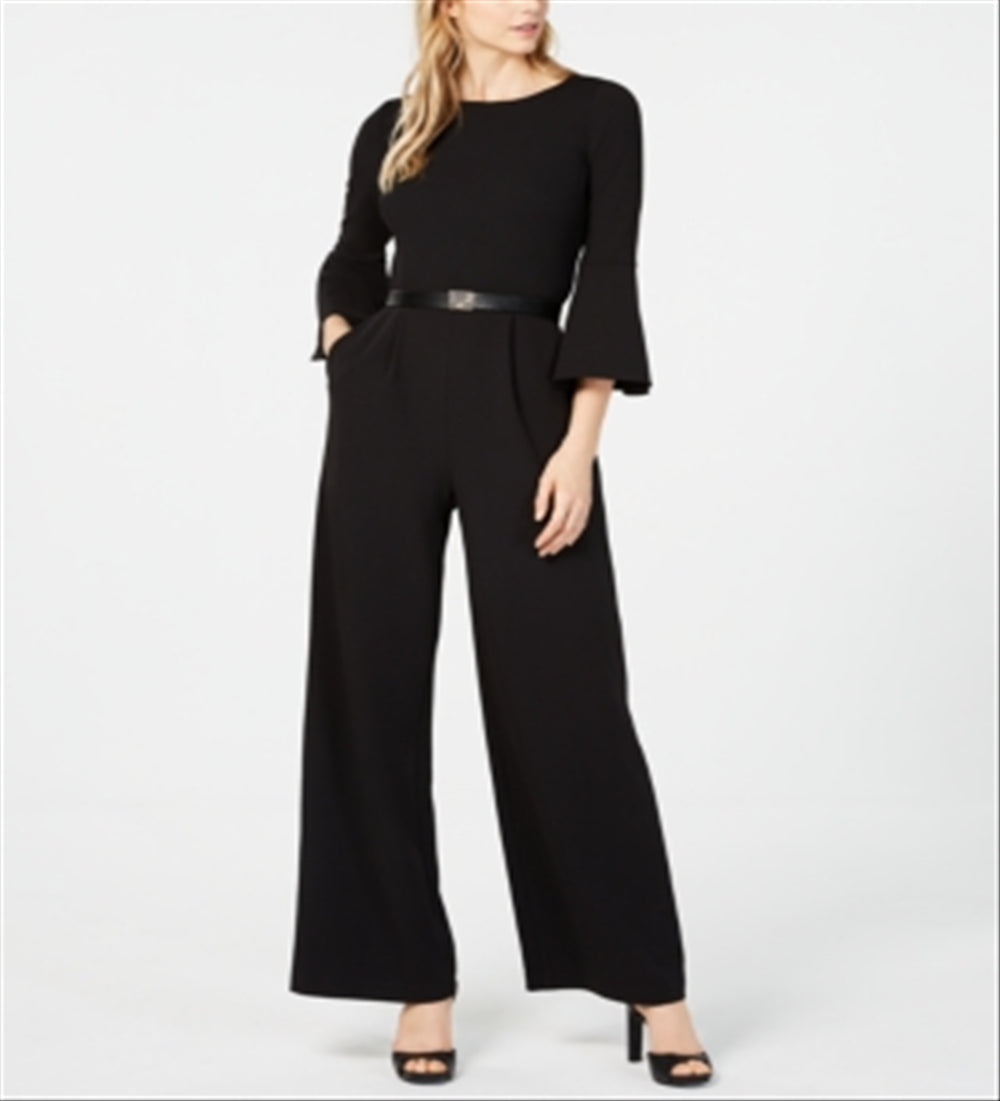 Calvin Klein Belted Bell-Sleeve Jumpsuit Black Size 10