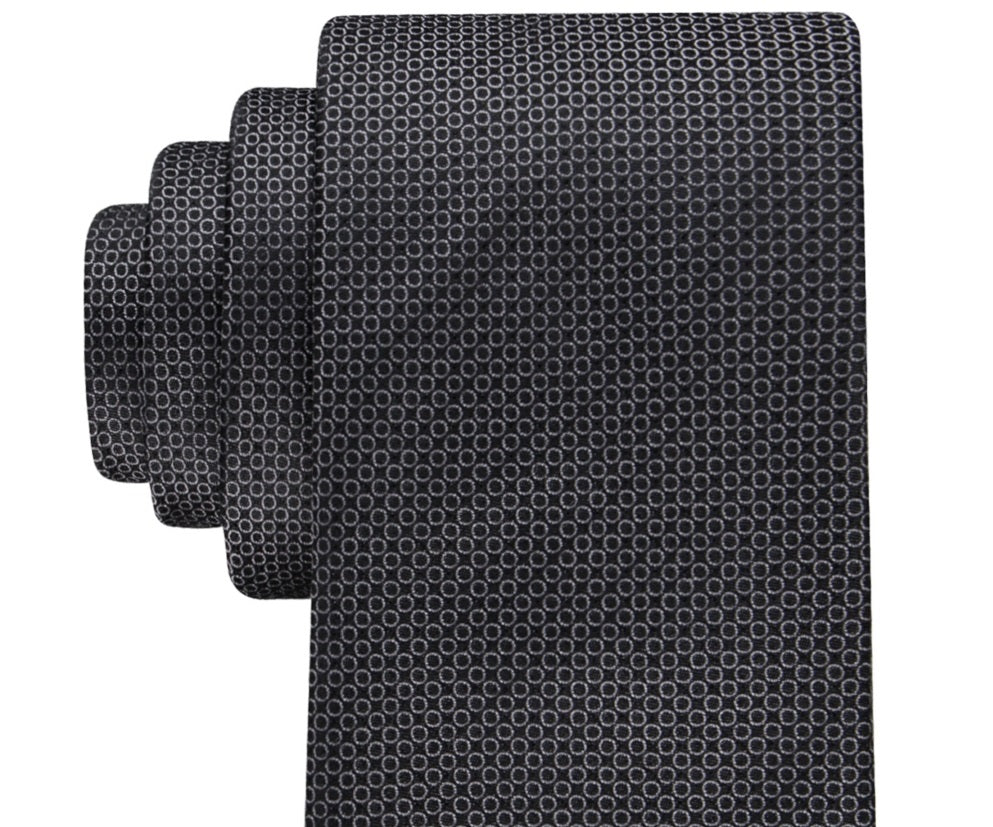 Calvin Klein's classic three-inch tie is ready to become the latest staple of your formal collection| Featuring a texture-rich interconnected circle pattern| it elevates your dressed-up look with a dapper design