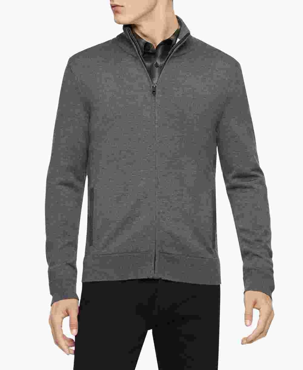 Calvin Klein Men's Merino Wool Full-Zip Sweater Gray Size Large