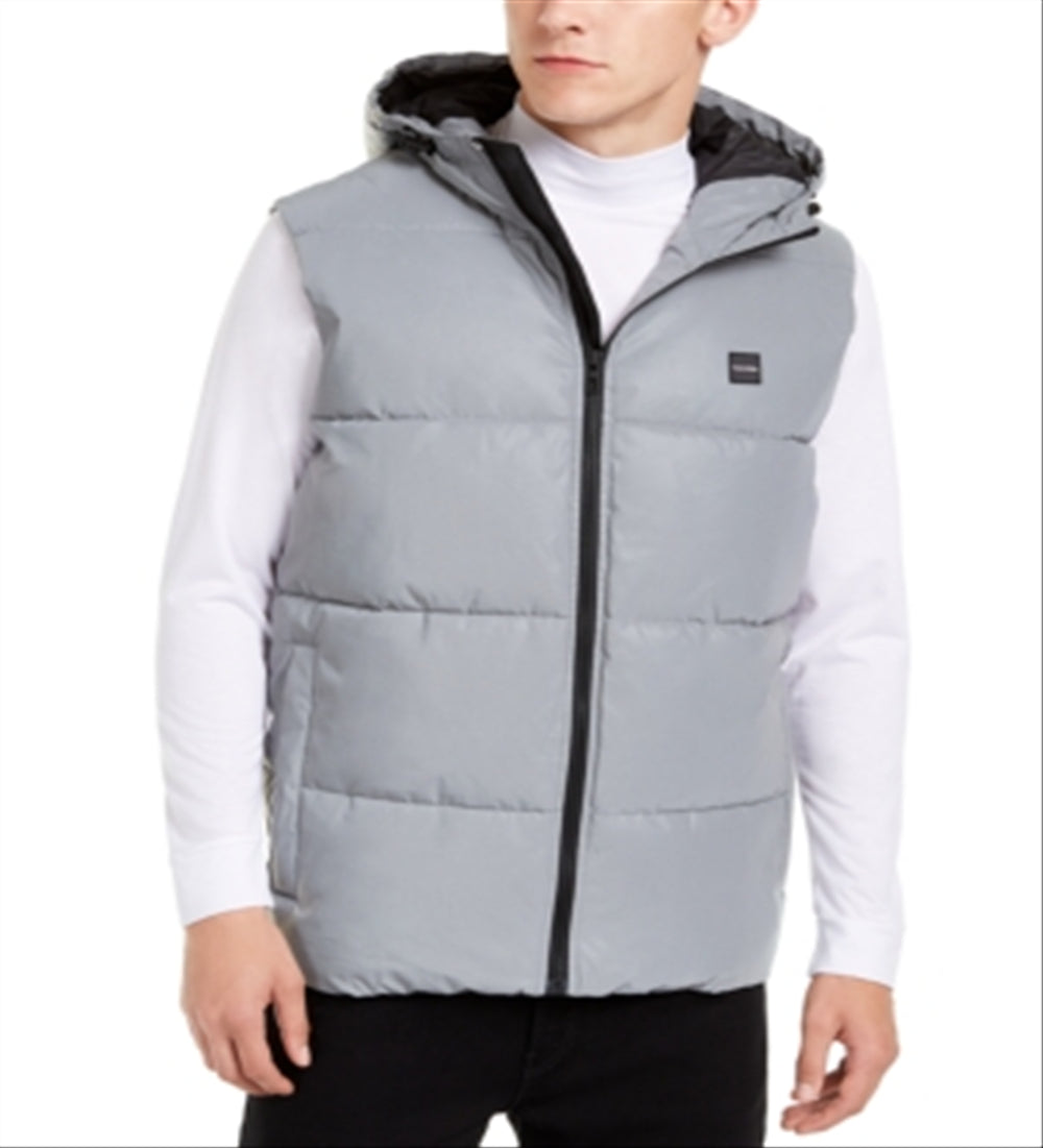 Calvin Klein Men's Reflective Hooded Puffer Vest Grey Size Medium