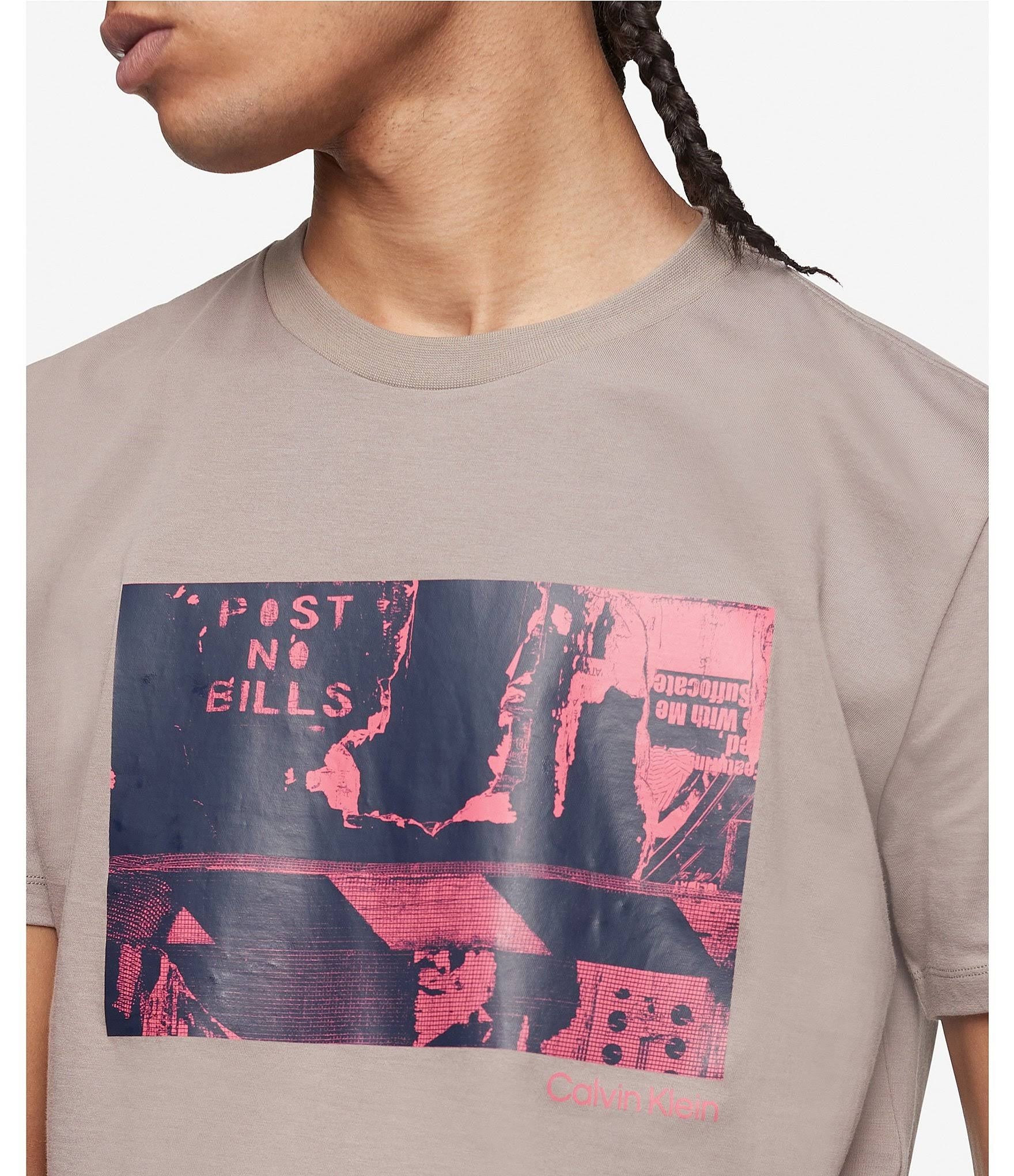 Calvin Klein T-ShirtSize; Your Choice of Available Sizes|Armpit to Armpit; M/21 - L/22 - XL/23 - XXL/25|Neckline to Hem Back Middle; M/28 - L/29 - XL/30 - XXL/30.5|Color; Your Choice of Available Colors|Material; 100% Cotton|Graphic Print Front|Short Sleeves
