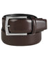 Feather edges polish semi-shiny leather| bringing enduring sophistication to this dress belt from Calvin Klein.| Harness buckle| Approx. 32mm strap width| Leather| Spot clean| Imported