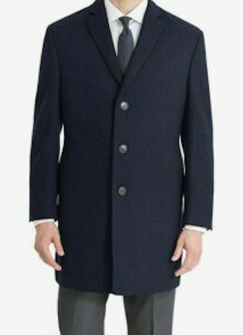Calvin Klein Men's Single Breasted Wool Blend Overcoat Blue Size 50
