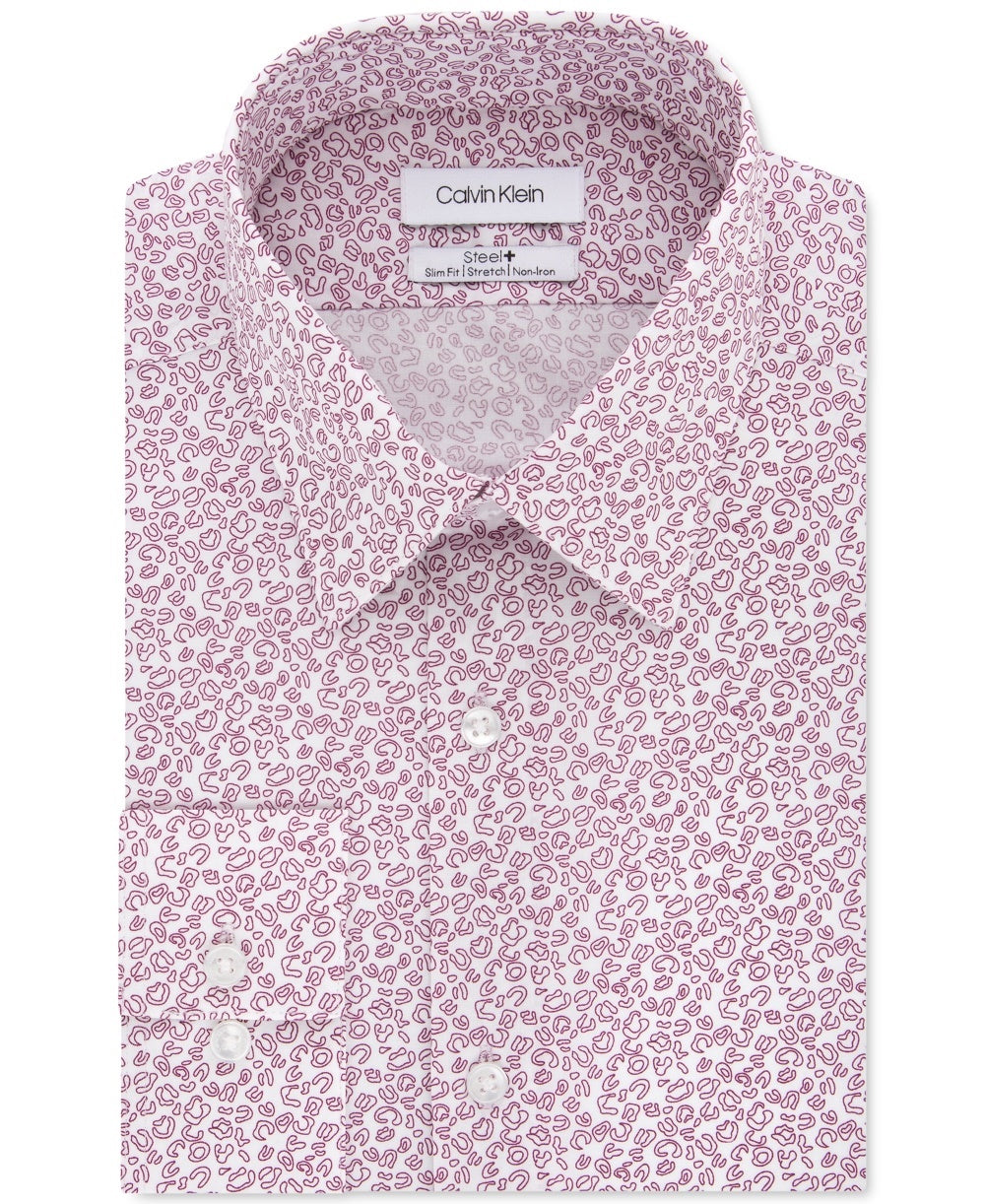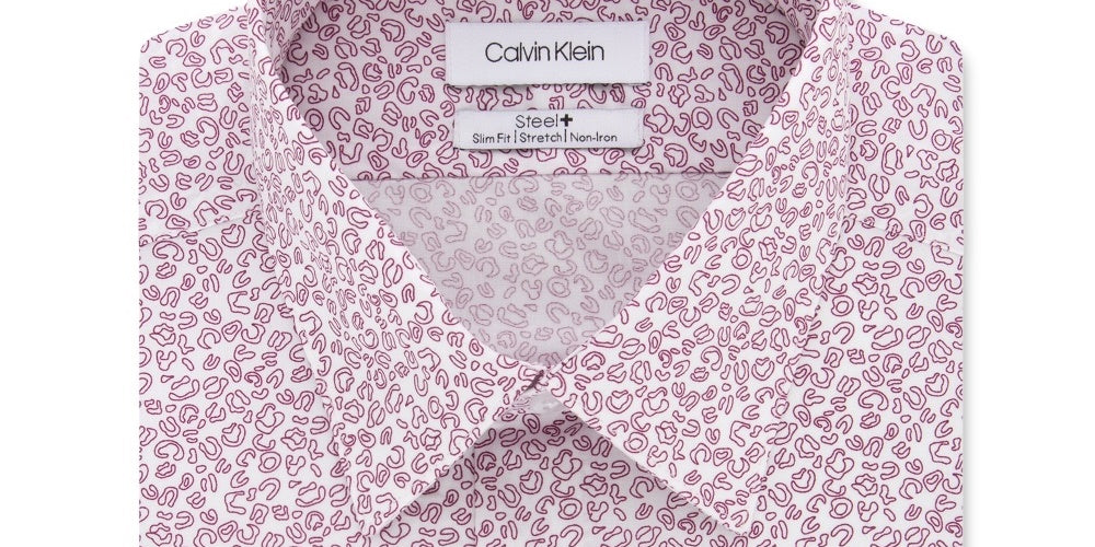 Calvin Klein Men's Slim Fit Non Iron Performance Stretch Abstract Print Dress Shirt Red Size 17X34-35