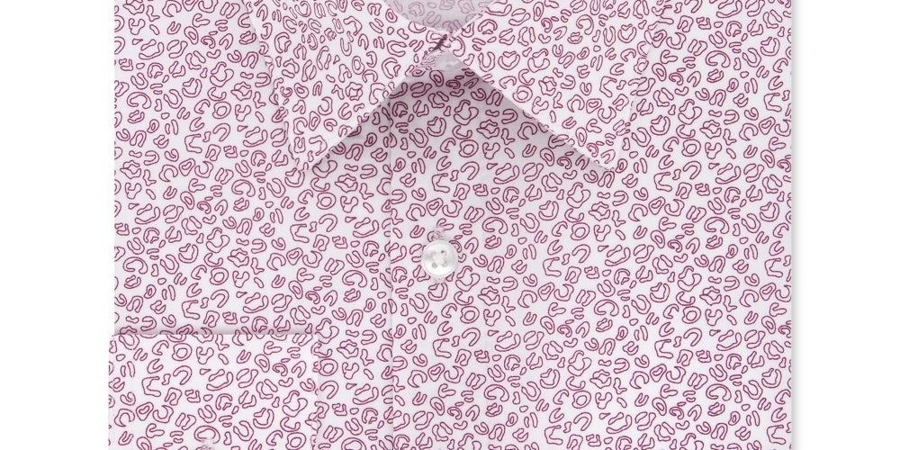 A slim fit is cut closer through the chest, sleeves and waist; features slim armholes and sleeves|Non-iron|Point collar|Barrel button cuffs|Abstract-print pattern|Stretch performance; wicking fabric helps evaporate moisture