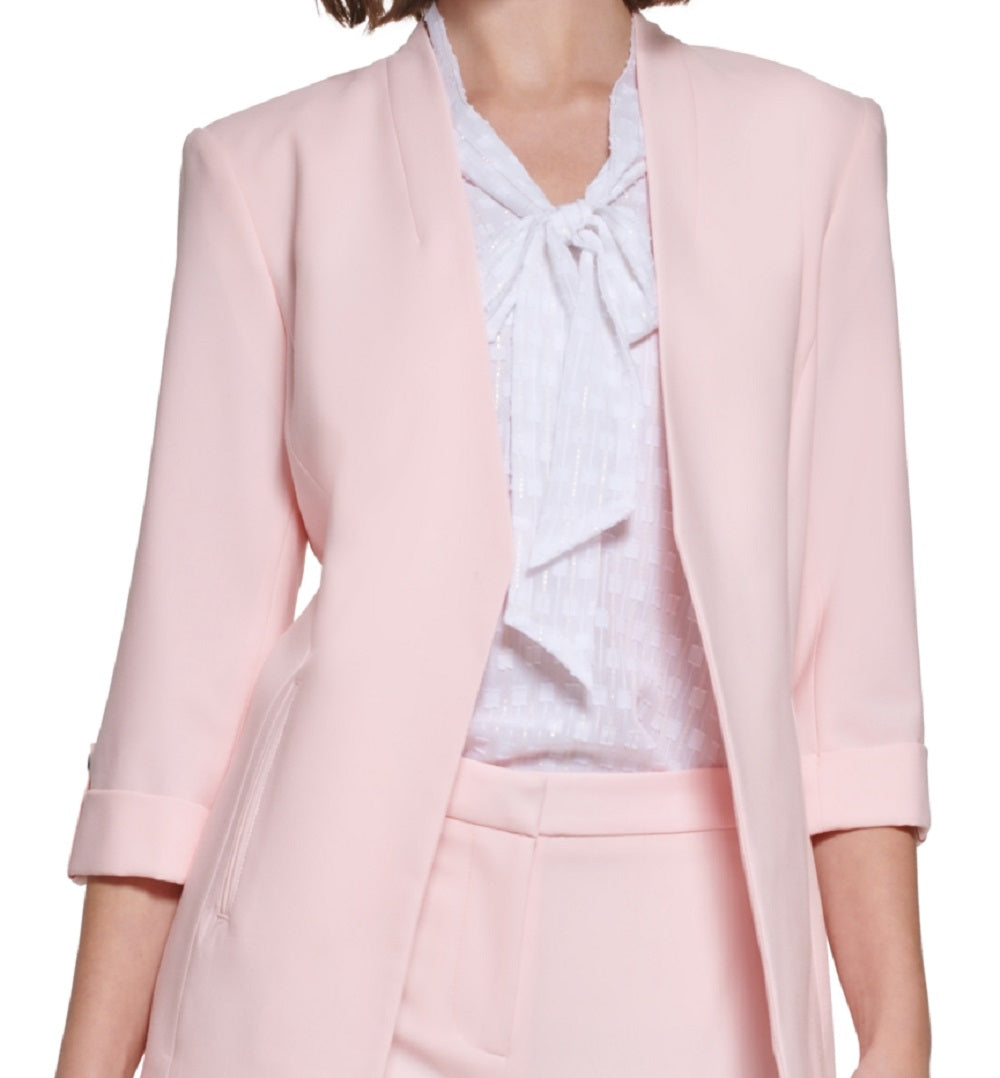 Calvin Klein Women's 3/4 Sleeve Open Front Blazer Pink Size 6Petite