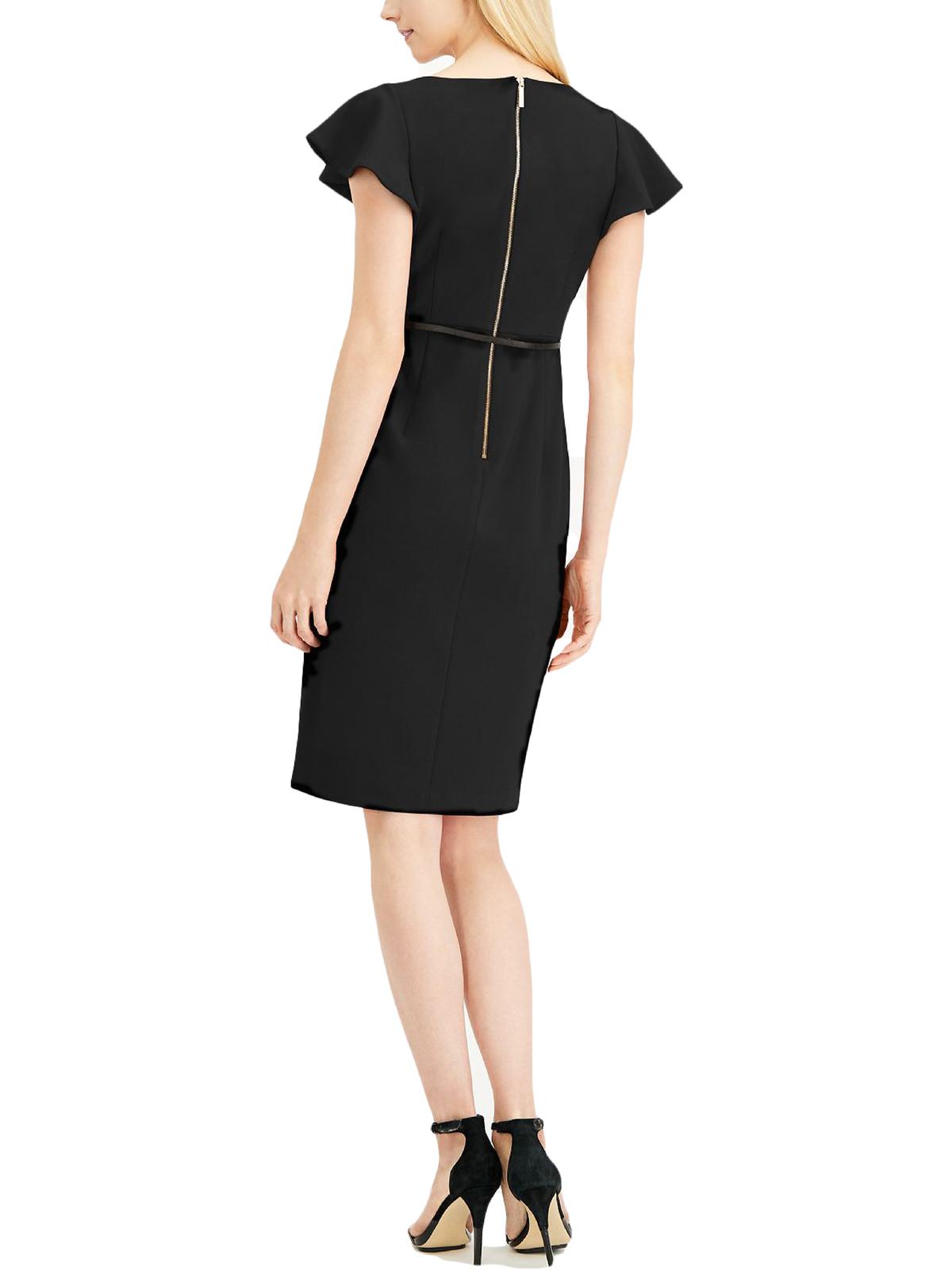 Calvin Klein Women's Belted Ruffle-Sleeve Sheath Dress Black Size 12