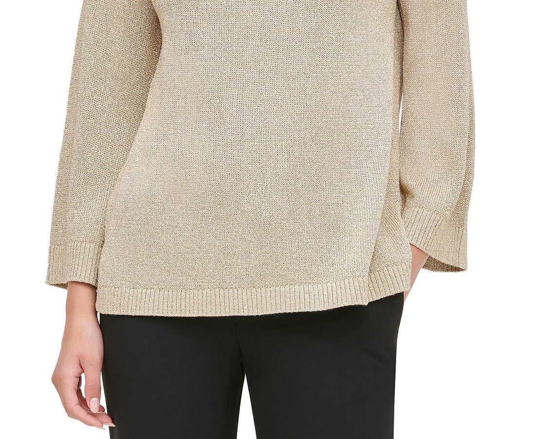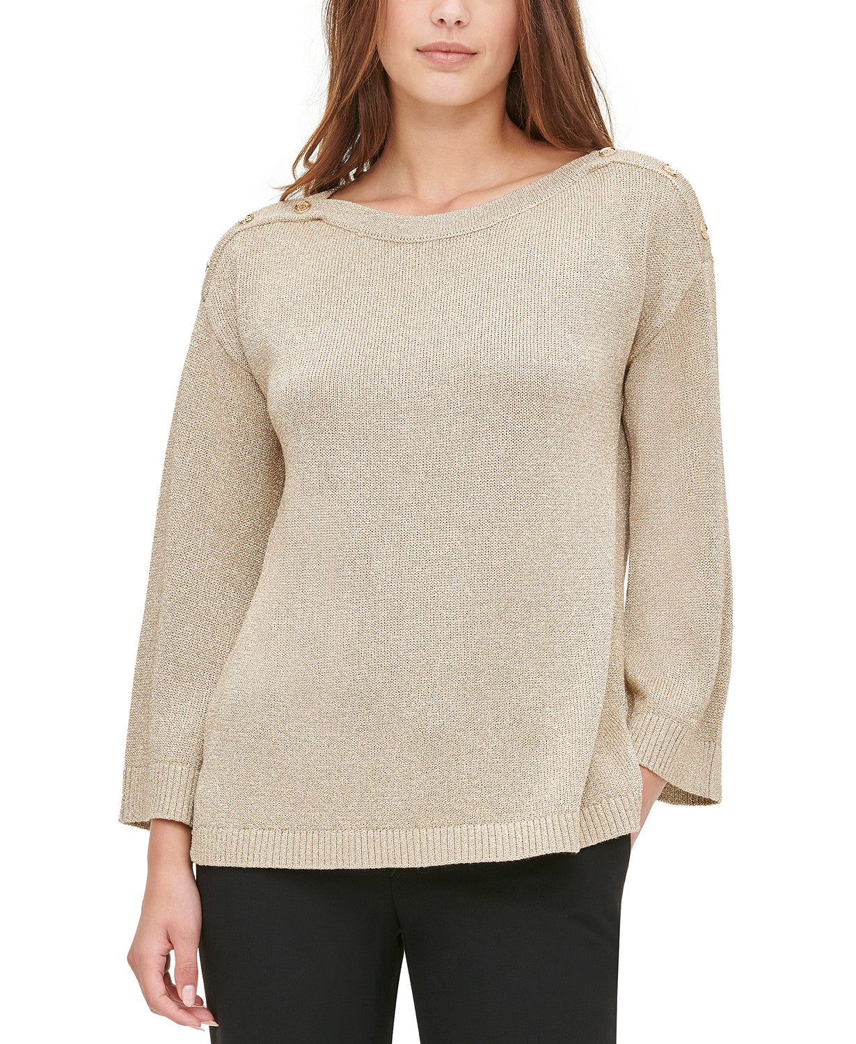 Calvin Klein Women's Button-Shoulder Metallic Sweater Brown Size Small