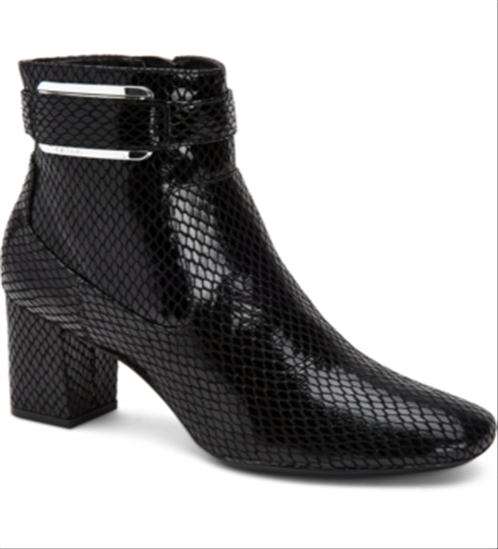 Overlay and modern buckled straps lend a hint of western inspiration to the sleek silhouette of Calvin Klein's Cattee booties