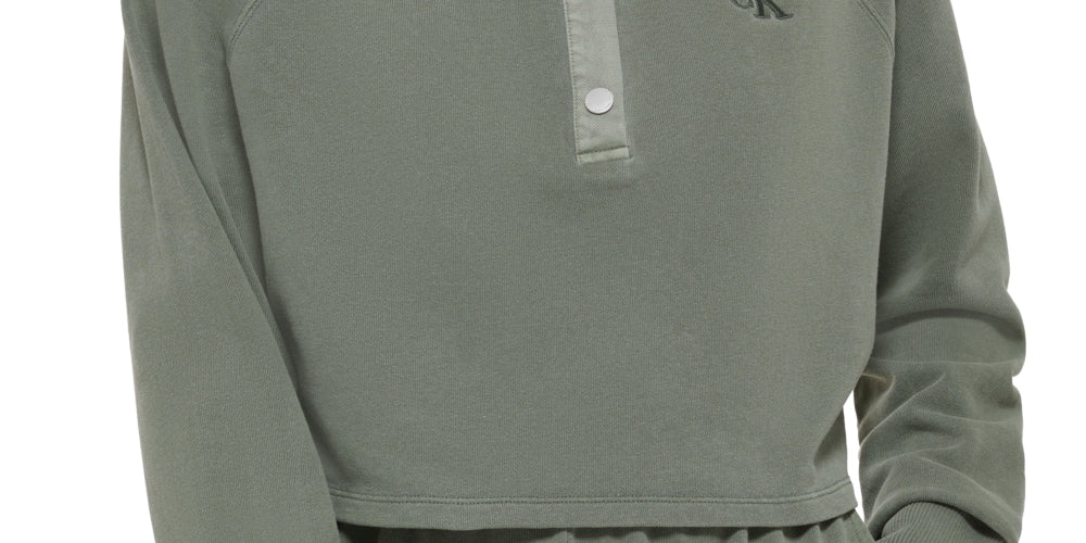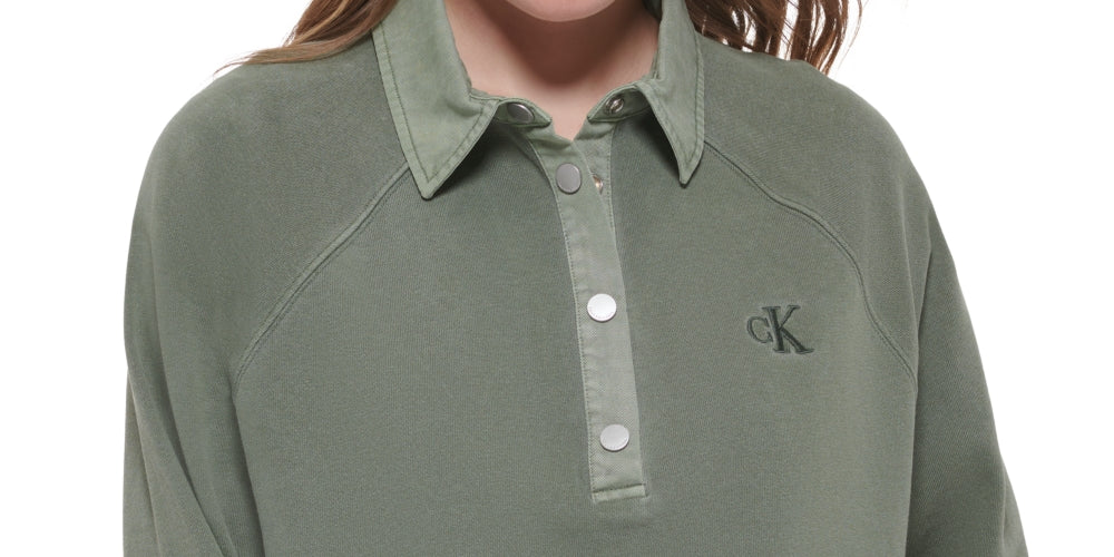 Calvin Klein updates this classic cropped sweatshirt with polo inspired style by adding a point collar and snap closures| (Clearance)