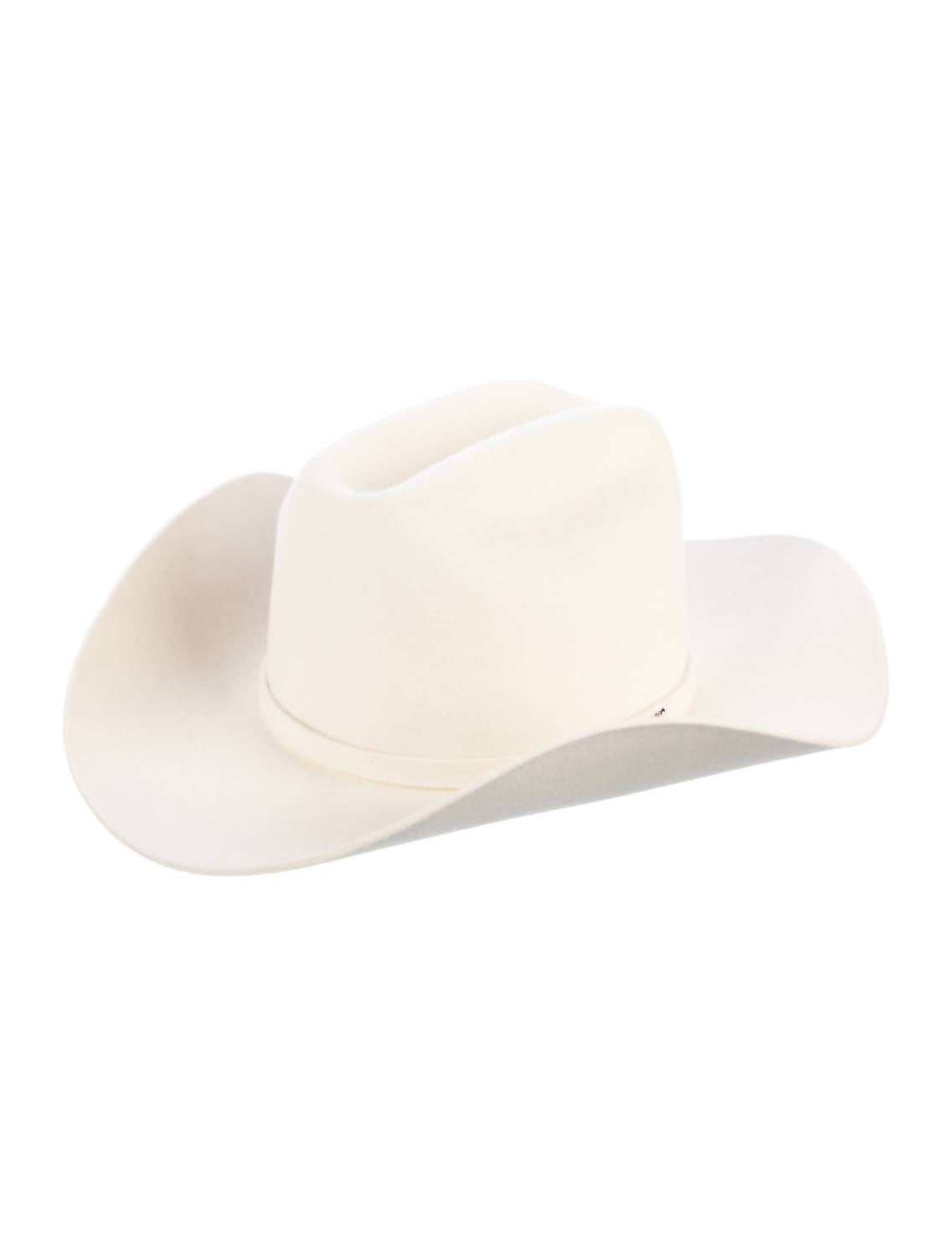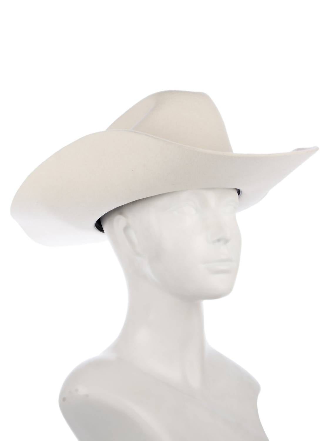 Turn heads in this stylish and chic hat. Not only is this accessory a must for keeping the sun out of your face, it will also be the perfect complement to any cute warm-weather outfit. The Women's Cowboy Hat by Calvin Klein in off-white exudes effortless style with its classic design. Crafted from 100% rabbit fur felt with a cotton lining, this hat offers both luxury and comfort. Made in Italy, it features a brim of 10.5cm and a circumference of 57cm, ensuring a perfect fit. Ideal for making a statement while providing sun protection.