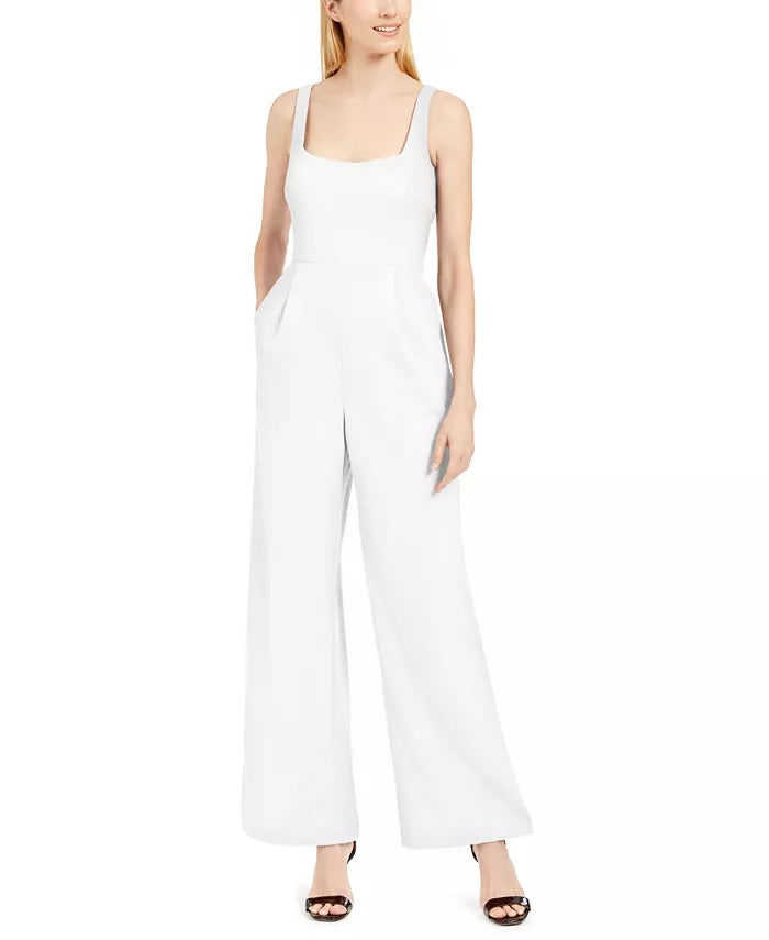 Approx. inseam; 32|Wide leg|Square neckline; Hidden back zipper with hook-and-eye closure|Unlined|Polyester/spandex