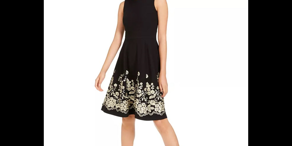 Calvin Klein Women's Embroidered A Line Wear To Work Dress Black Size 2