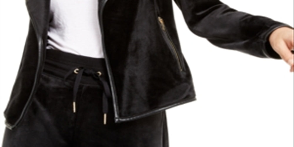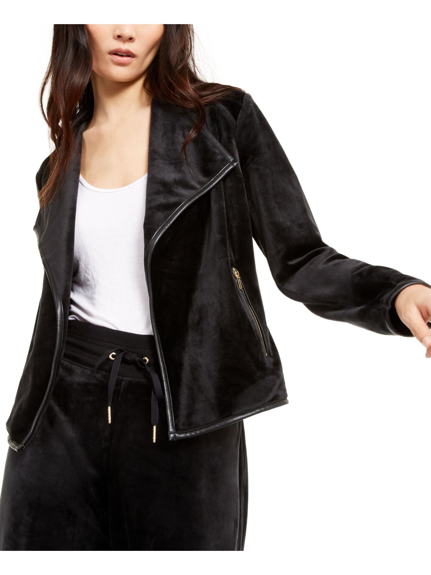 Calvin Klein Women's Faux Leather Trim Flyaway Jacket Black Size M