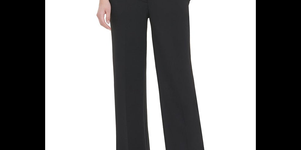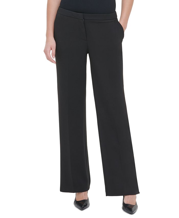 Elegant slits accent wide| flowing legs to update this look from Calvin Klein| sleek pants that are the start for endless stylish ensembles.| Approx. inseam; 32| Mid rise; wide legs with slits| Flex hook closure| On-seam pockets at sides