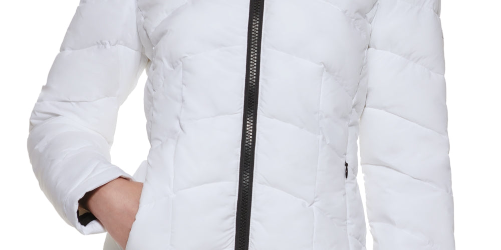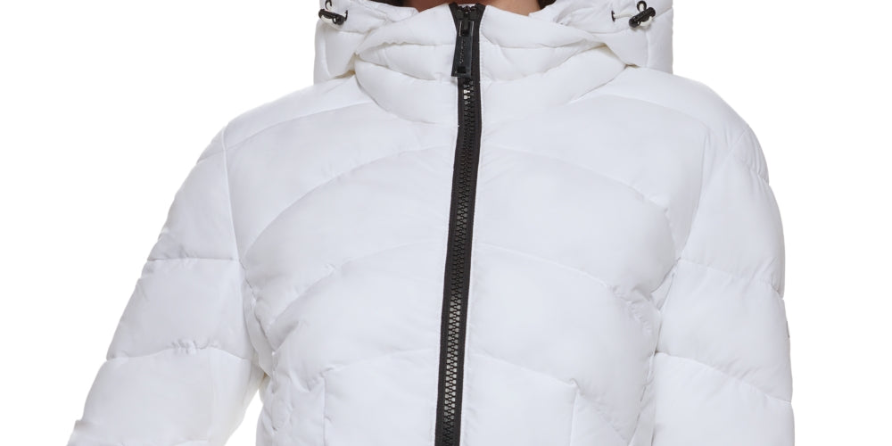 The perfect water-resistant puffer coat for the season| this petite design from Calvin Klein features a removable hood and zip pockets