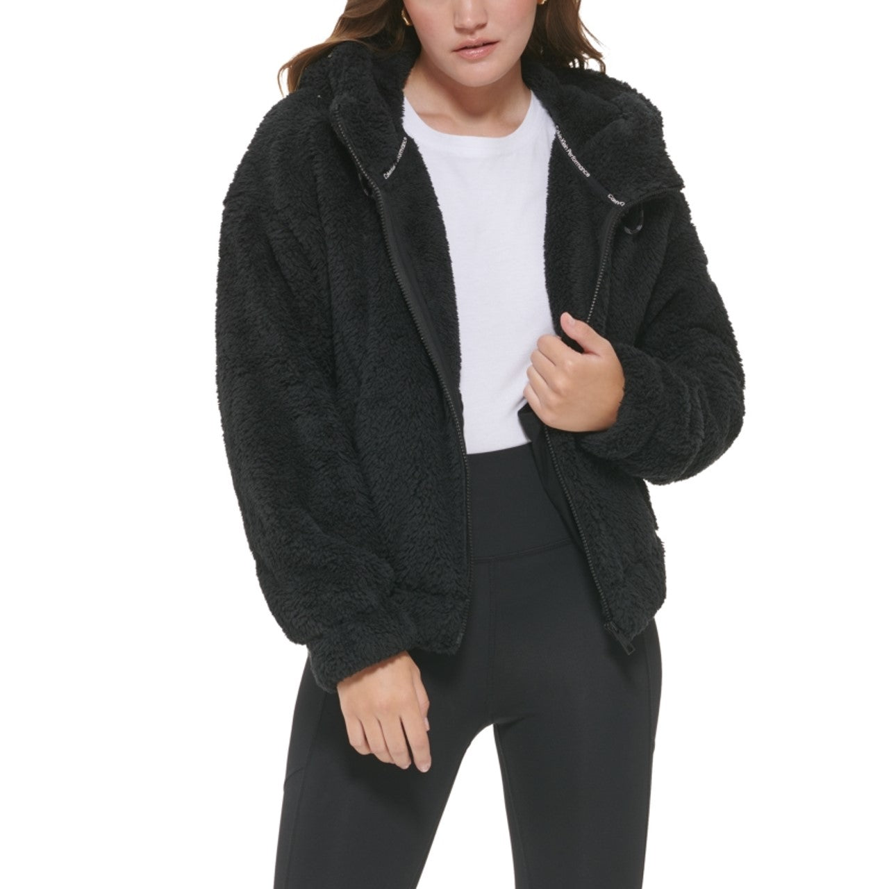 Calvin Klein Women's Hooded Sherpa Jacket Black Size Large