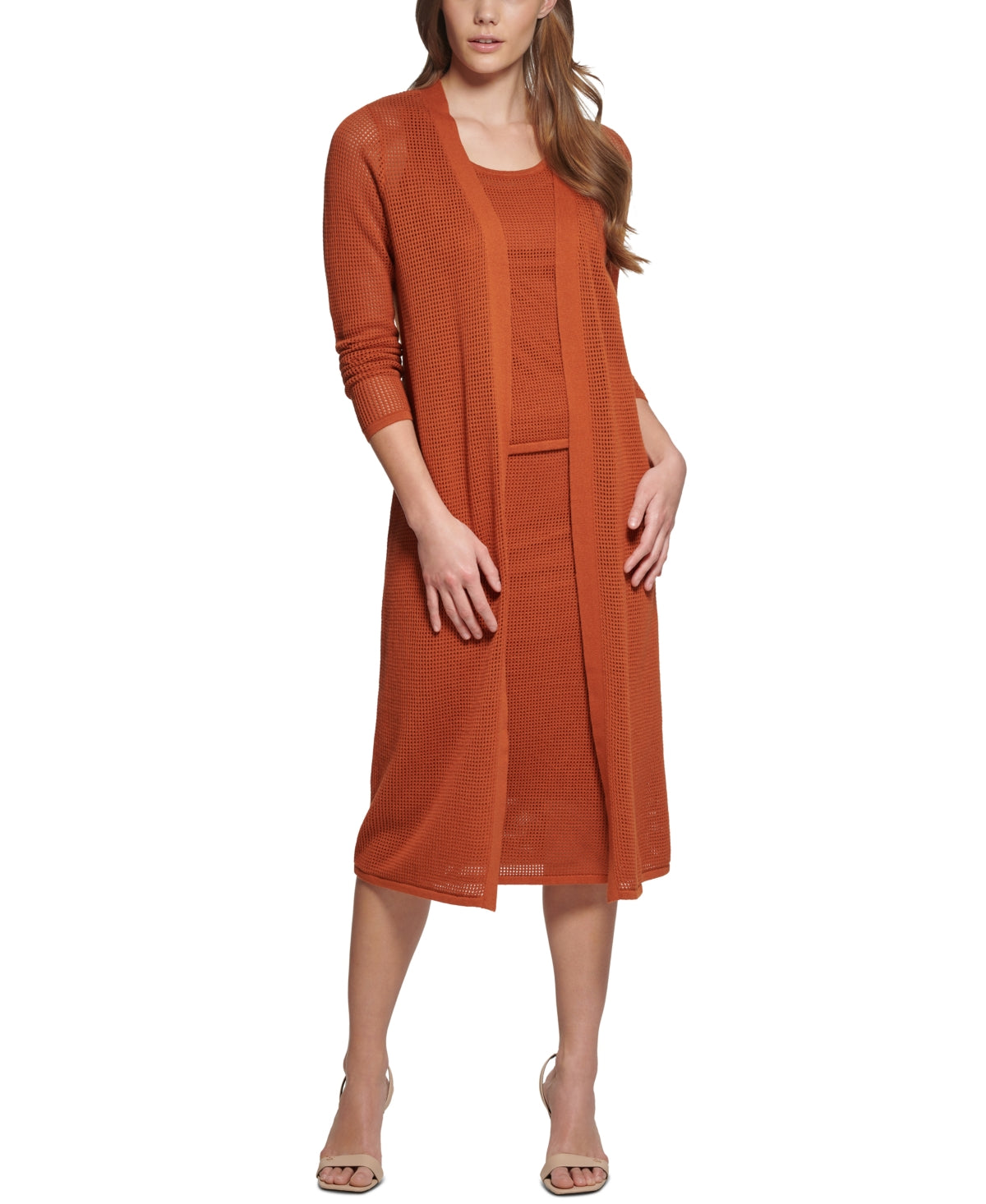 Calvin Klein Women's Mesh Knit Duster Cardigan Brown Size Small