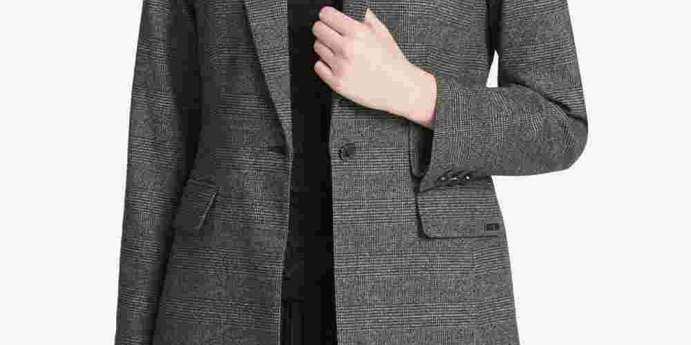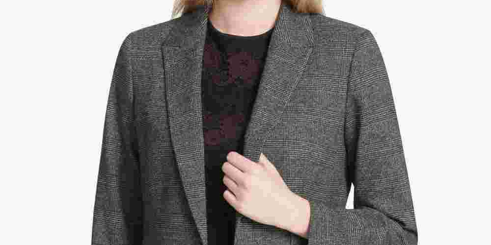 Calvin Klein Women's One Button Plaid Blazer Gray Size 12