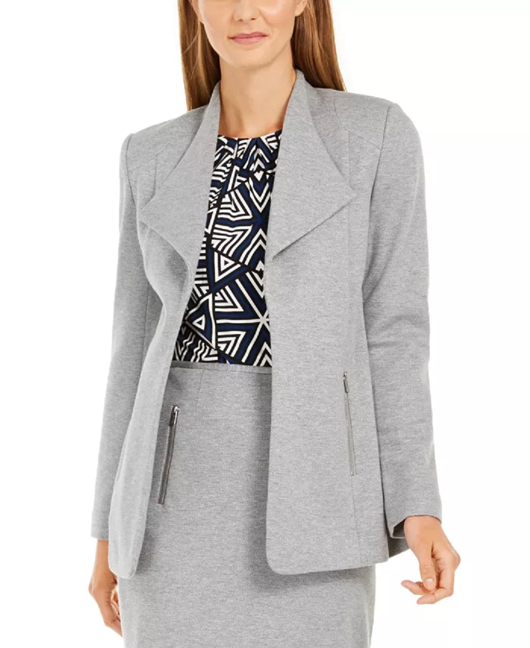 Wing collar; open front|Zip pockets at front|Lined|Cotton/polyester; lining; polyester|Dry clean