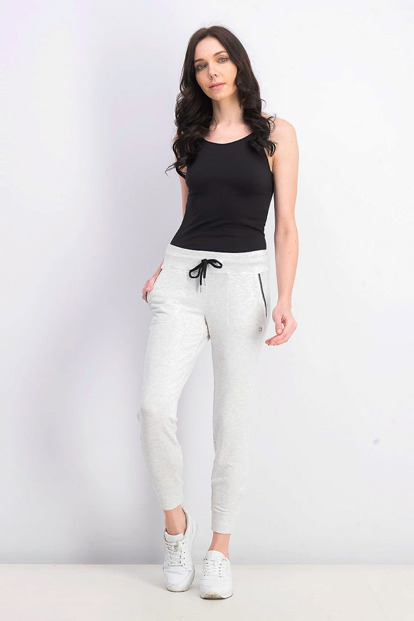 Approx. rise: 10-1/2"; ankle length; approx. inseam: 28"|INSPIRED FOR: Athleisure/yoga|Wicking technology helps evaporate moisture|Elastic waistband with drawstring; pockets with contrast trim at front|Rayon/polyester/spandex|Machine washable