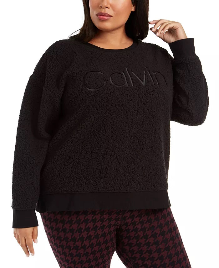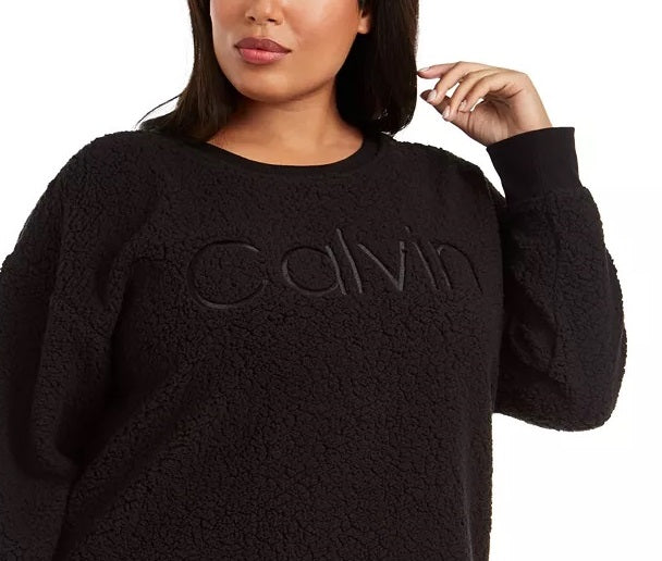 Calvin Klein Women's Performance Plus Size Embroidered Sherpa Sweatshirt Black Size 1X