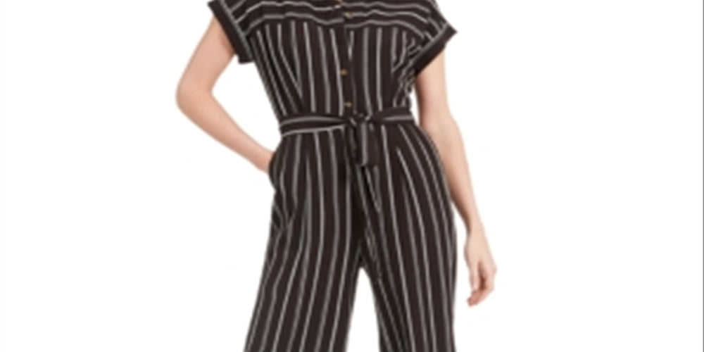 Calvin Klein Women's Petite Striped Jumpsuit Black Size 8P