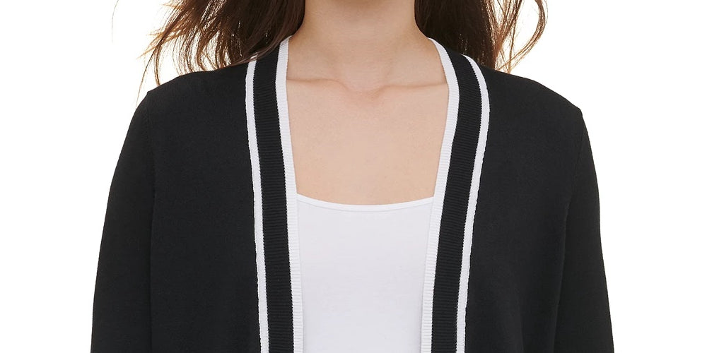 Approx. 32-1/2" long|Open front|Contrast trim|Rayon/nylon|Hand wash|Imported