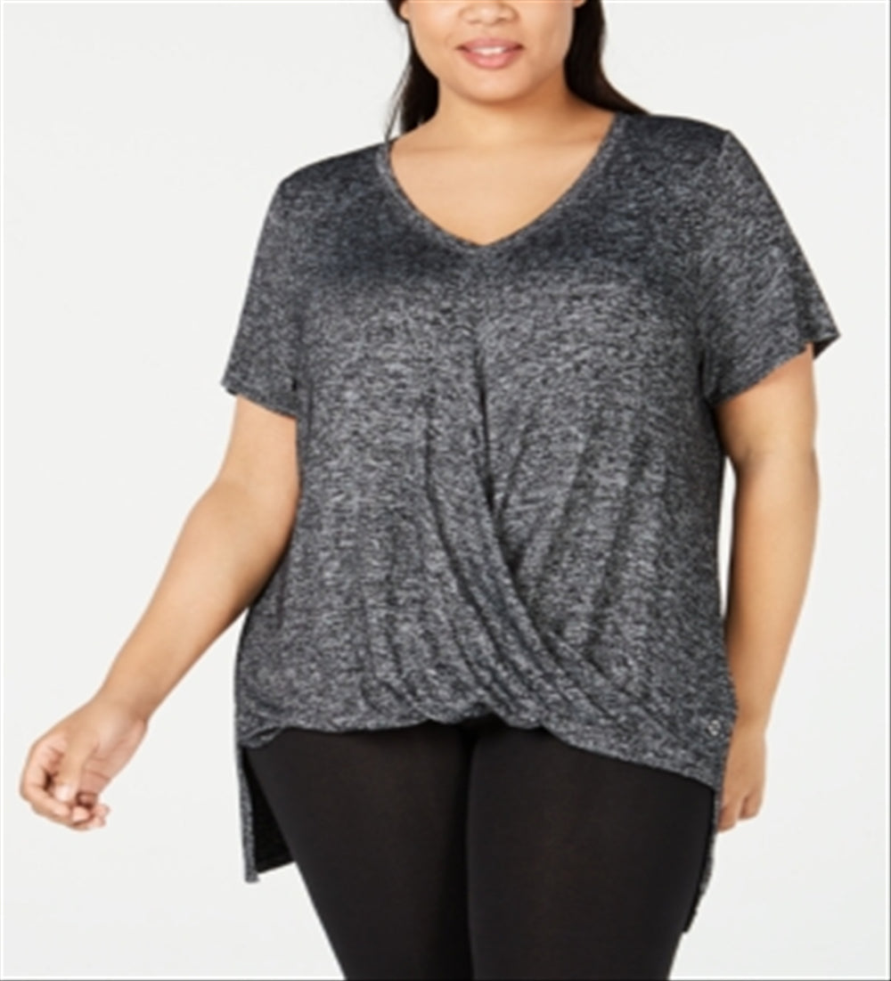 Calvin Klein Women's Plus Draped V Neck T-Shirt Gray Size 1X