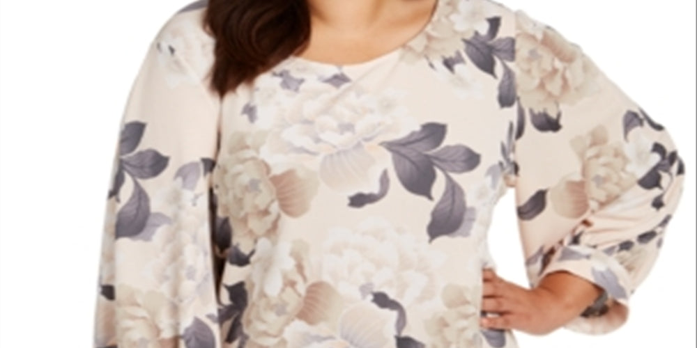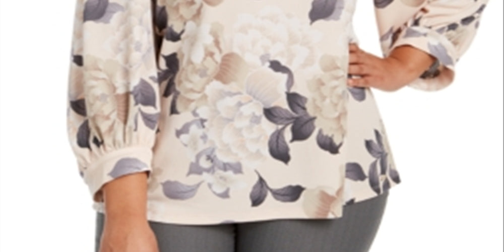 Calvin Klein Women's Plus Floral Print Blouson-Sleeve Top Pink Size 2X