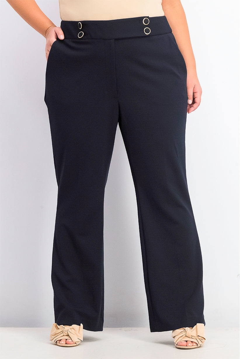 Calvin Klein Women's Plus Size Button-Detail Dress Pants Blue Size 16W