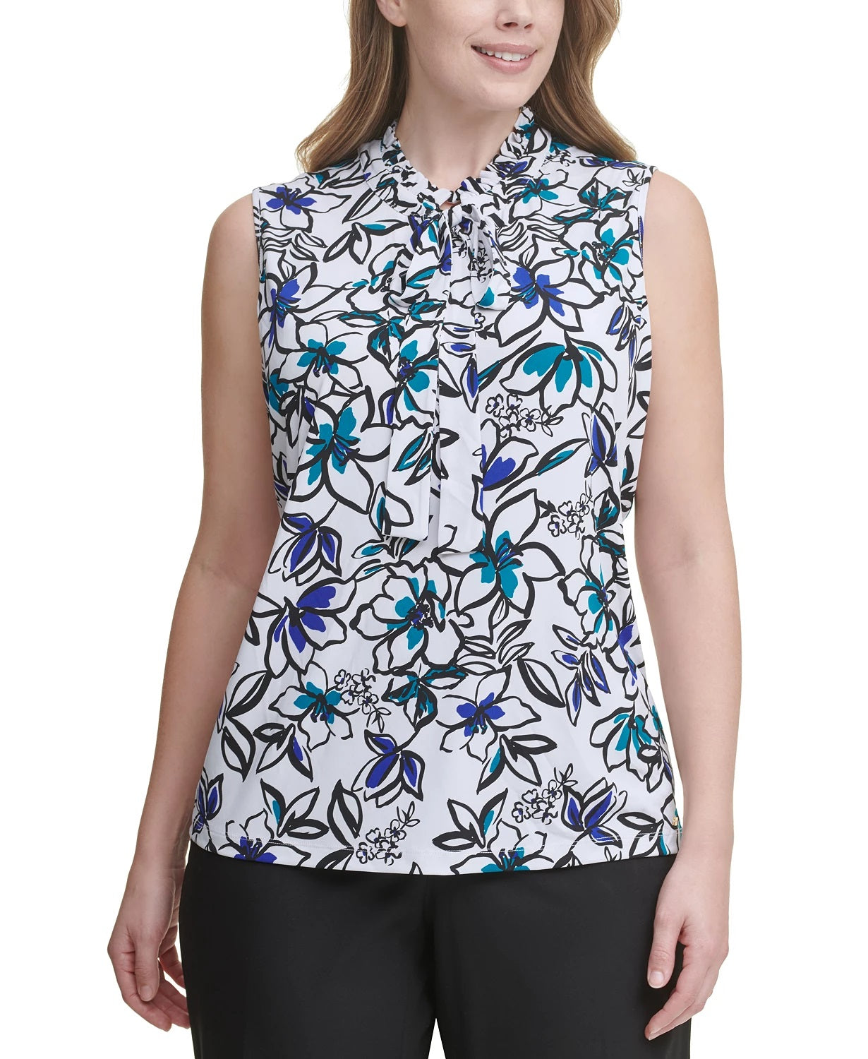 High neckline with ruffled edge|Imported|Tie detail at neckline|Web ID: 11753918