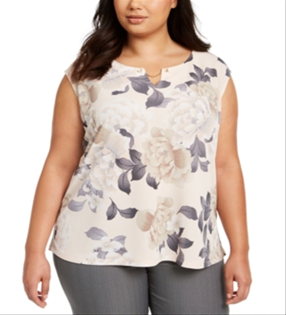 Calvin Klein Women's Plus Sleeveless Floral Print Top Pink Size 3X