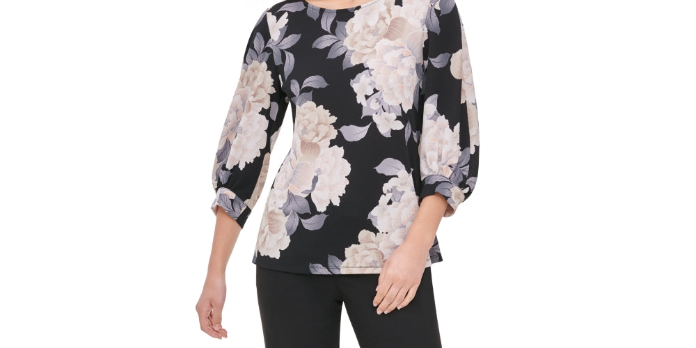 Approx. 25 long|Scoop neckline|3/4 blouson sleeves|Polyester/spandex; lining; polyester|Hand wash|Imported