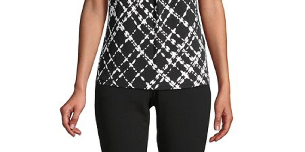 Calvin Klein Women's Printed Pleated-Neck Blouse Gray Size Small