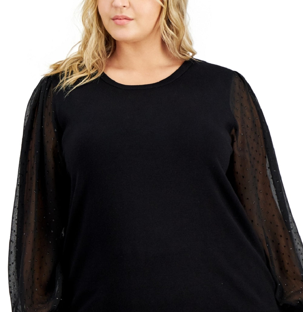 Calvin Klein Women's Sheer Sleeve Sweater Black Size 2X