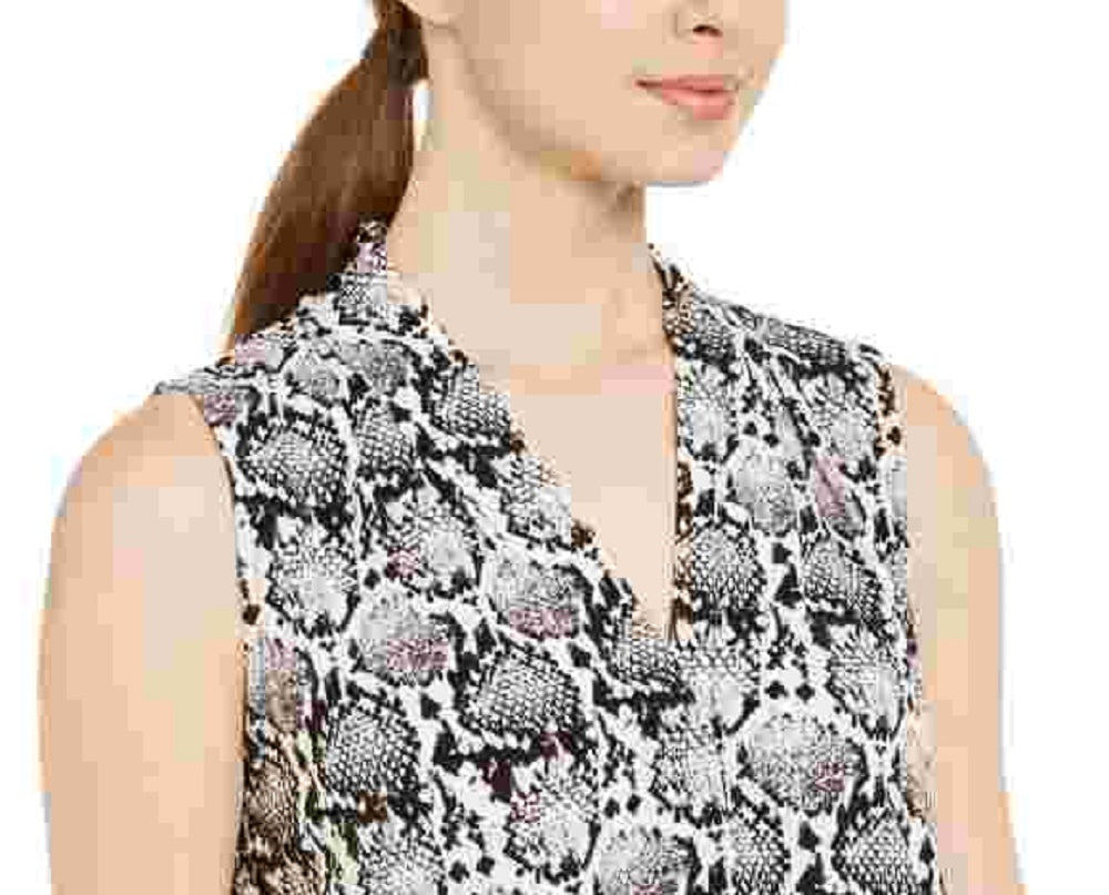 Calvin Klein Women's Sleeveless Snakeskin Print Top Charcoal Size Large