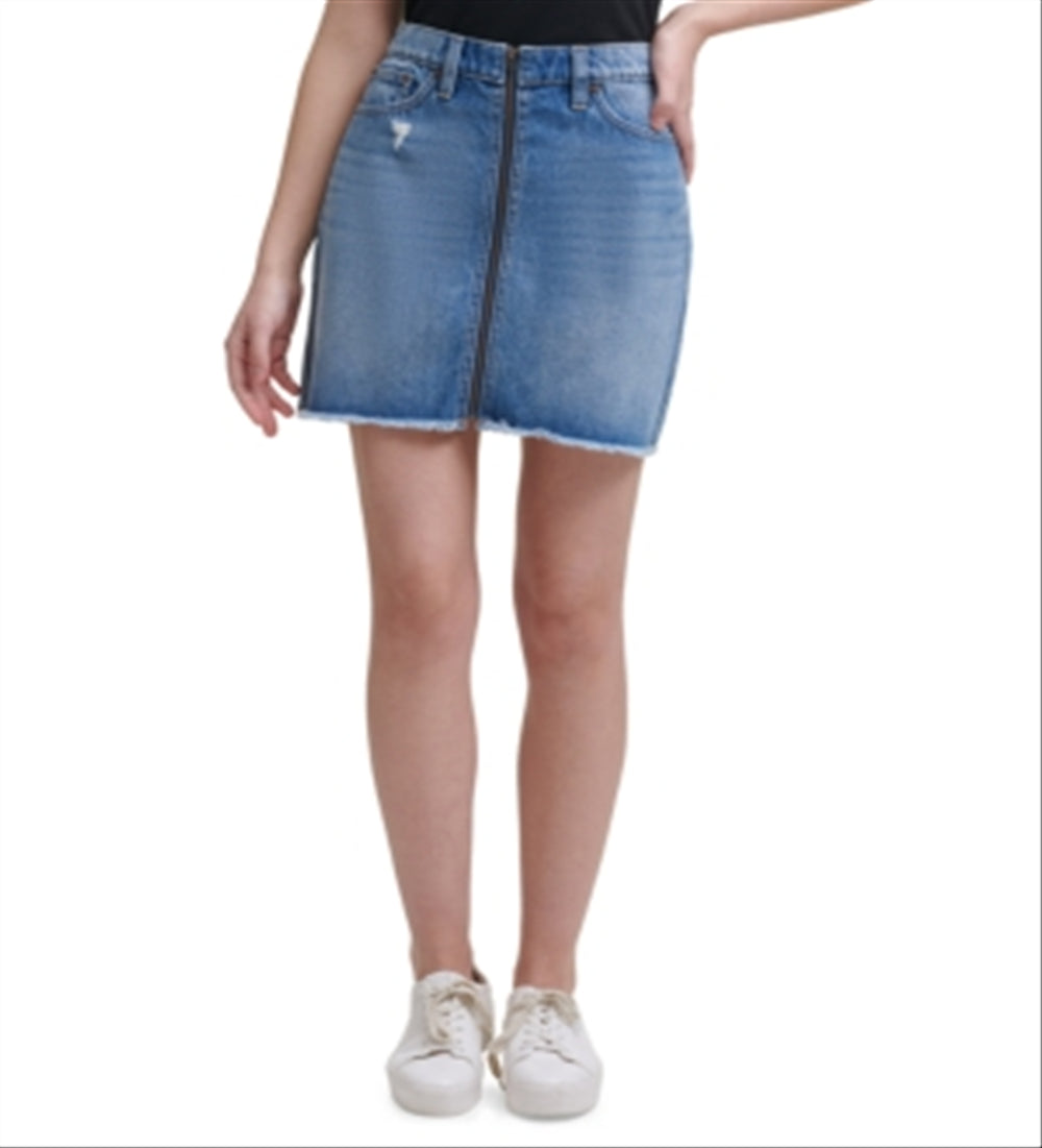 Calvin Klein Women's Zip Front High Rise Denim Skirt Blue Size 25