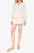 The Sorrento Blouse by Cami NYC is a chic addition to any wardrobe, crafted in a macadamia-toned, 100% cotton double gauze for a textured, lightweight feel. Designed with a relaxed crewneck and long sleeves featuring top-applied lace at the neckline and sleeve bands, this blouse combines elegance with comfort. Closure: Shell buttons at the center front and sleeve openings. Ideal for summer vacations, the minimalist style is perfect for a variety of relaxed occasions.