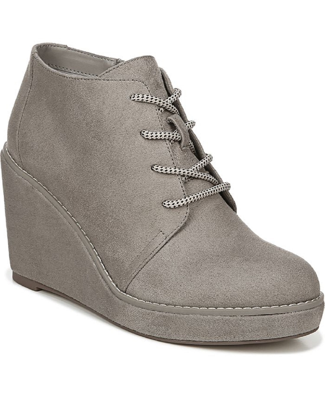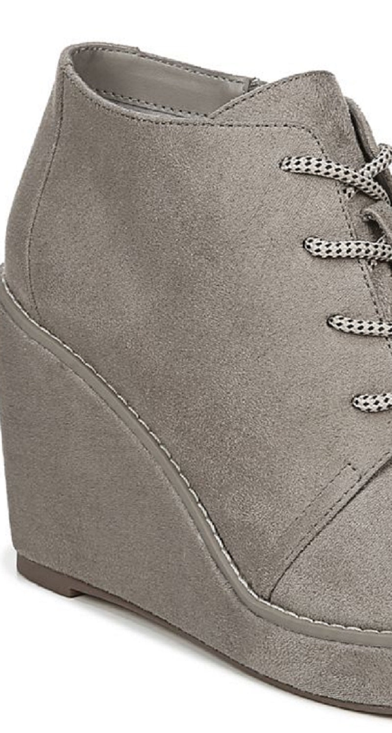 lace up wedge shootie| 3.5 heel| Zipper Closure| Fabric upper| lining| Manmade sole| Spot clean