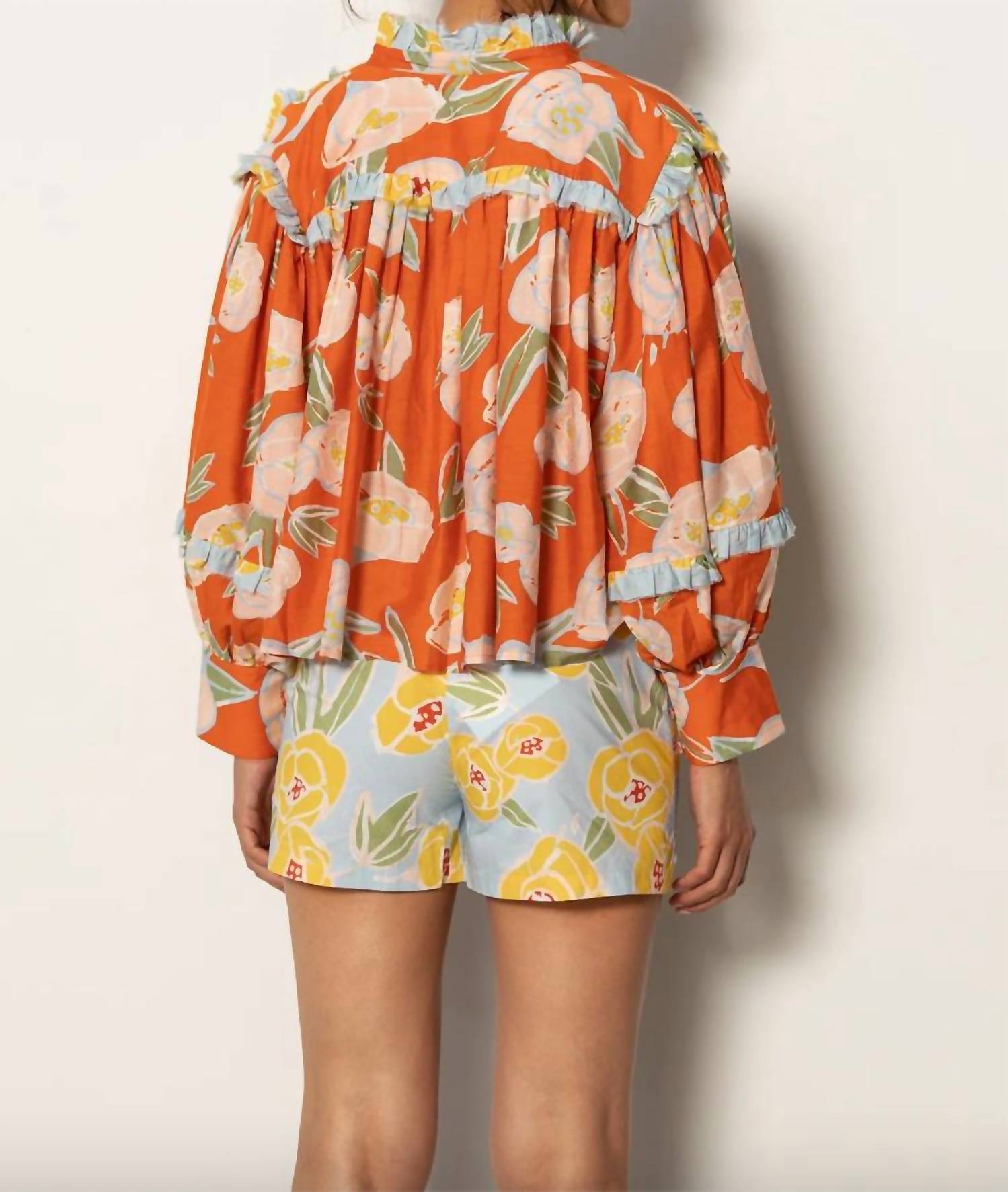 Tuck your favorite tee into these high-waist shorts for a more casual-cool feel. Discover the Floral Cabana Shorts by CAROLINA K, designed to make a statement with their high waist and vibrant Blue Peonies pattern. These women's shorts, made from 100% Organic Cotton, offer a pull-on closure for ease and comfort. Perfect for a boho chic look, they're tailor-made for summer vacations or your 4th of July celebrations. Care is simple with machine wash and tumble dry instructions.