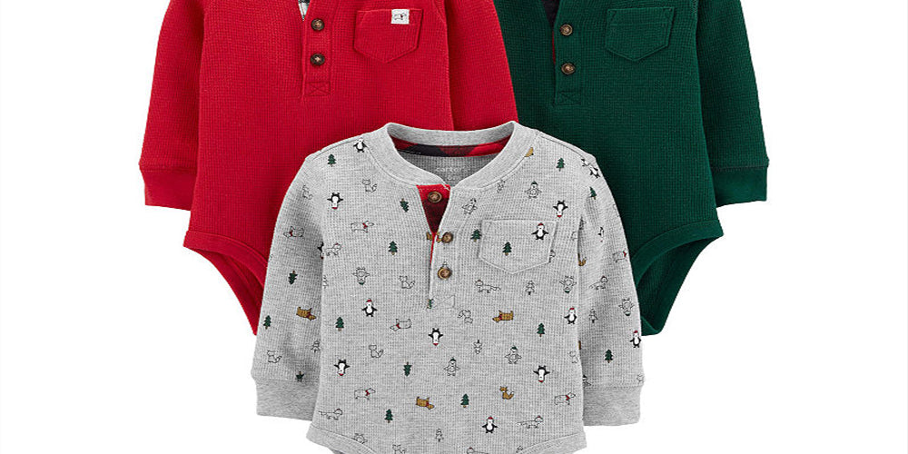 Carter's Baby Boys 3-Piece Cotton Thermal Holiday Bodysuits Size Newborn