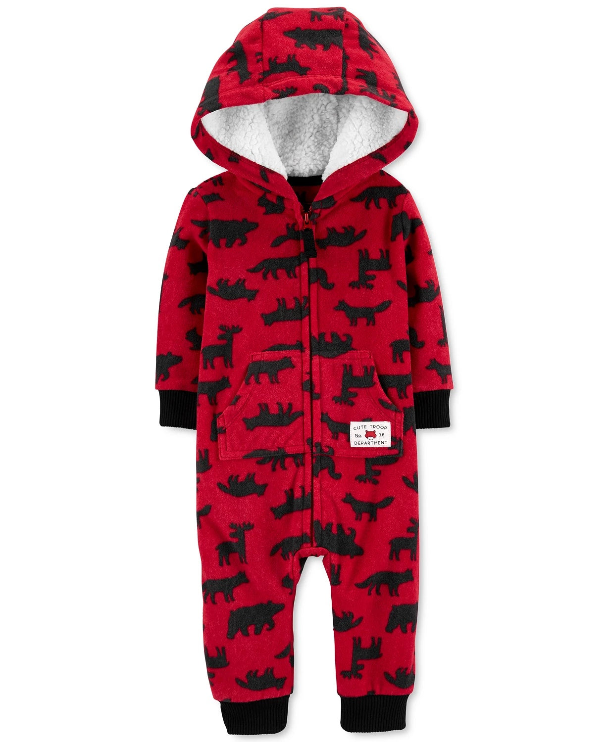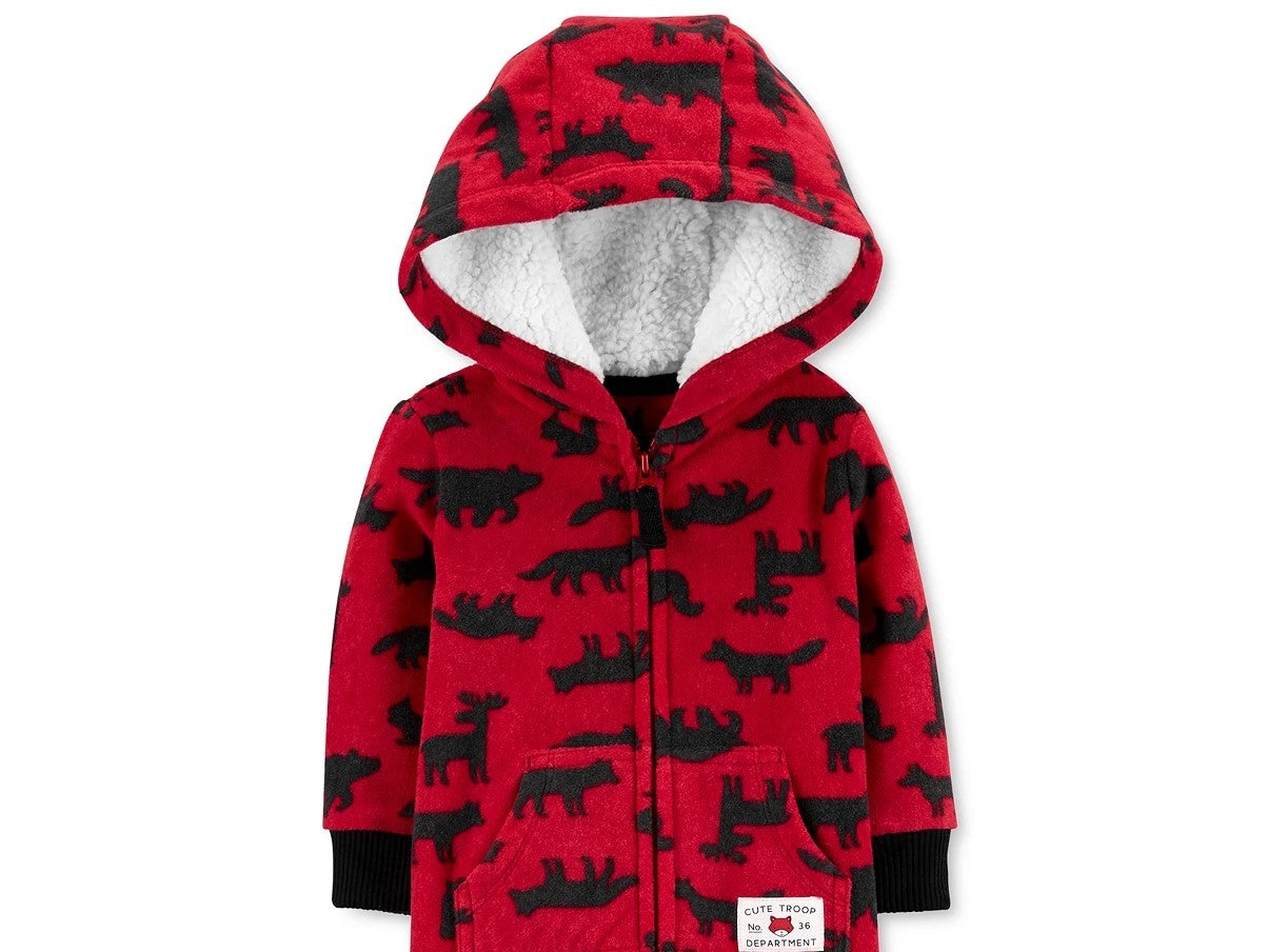 Carter's Baby Boys Hooded Woodland-Print Fleece Jumpsuit Red Size New Born