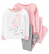 Carter's Baby Girl's 4 Pc Cotton Ballerina Pajamas Set White/Pink Size 9MOS