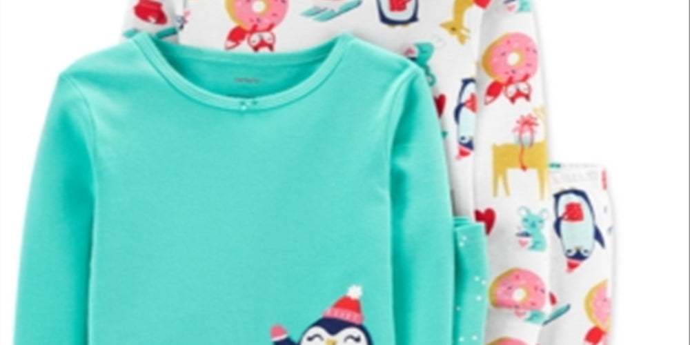 Carter's Baby Girl's 4 Pc Cotton Penguin Pajamas Set Green Size 12MOS