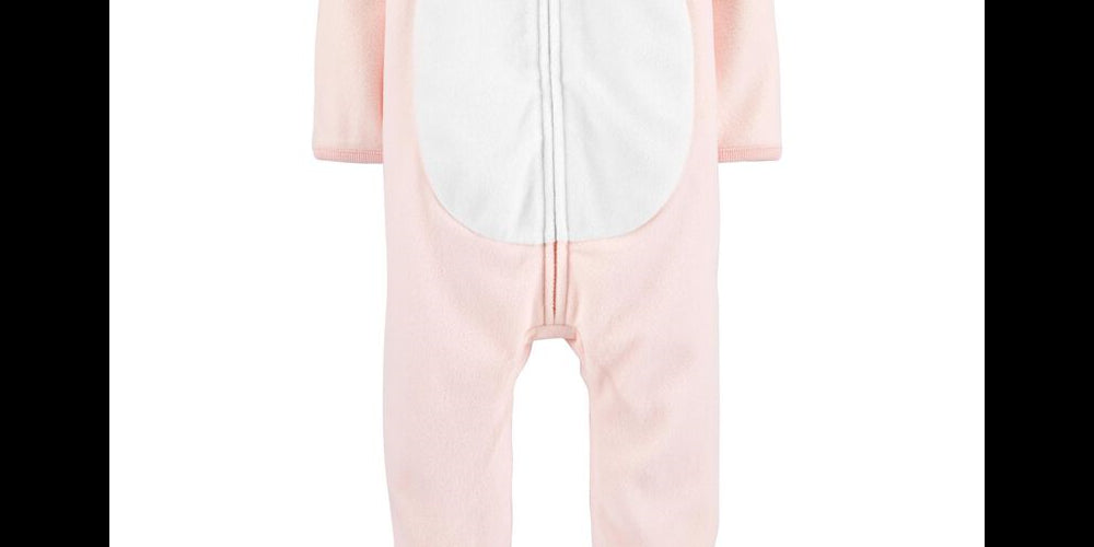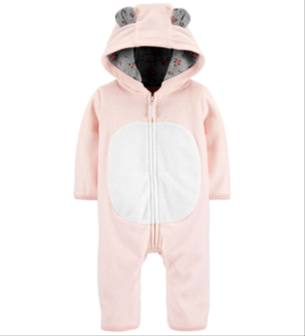 carter's baby girls hooded bear fleece jumpsuit| pink| 12 months