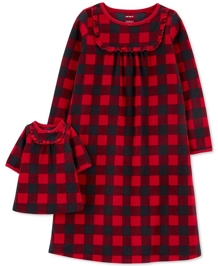 Classically cute and cuddly. Carter's keeps her and her favorite doll cozy all night long in this matching fleece nightgown set.| Pullover styling| Ribbed at neckline and cuffs| Ruffle trim at yoke| Includes matching doll nightgown| XS; 2-3| S; 4-5