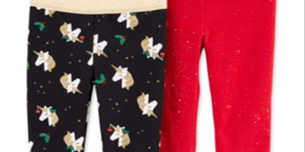 Carter's Toddler Girl's 2 Pk Unicorn Print & Glitter Leggings Red Size 4T