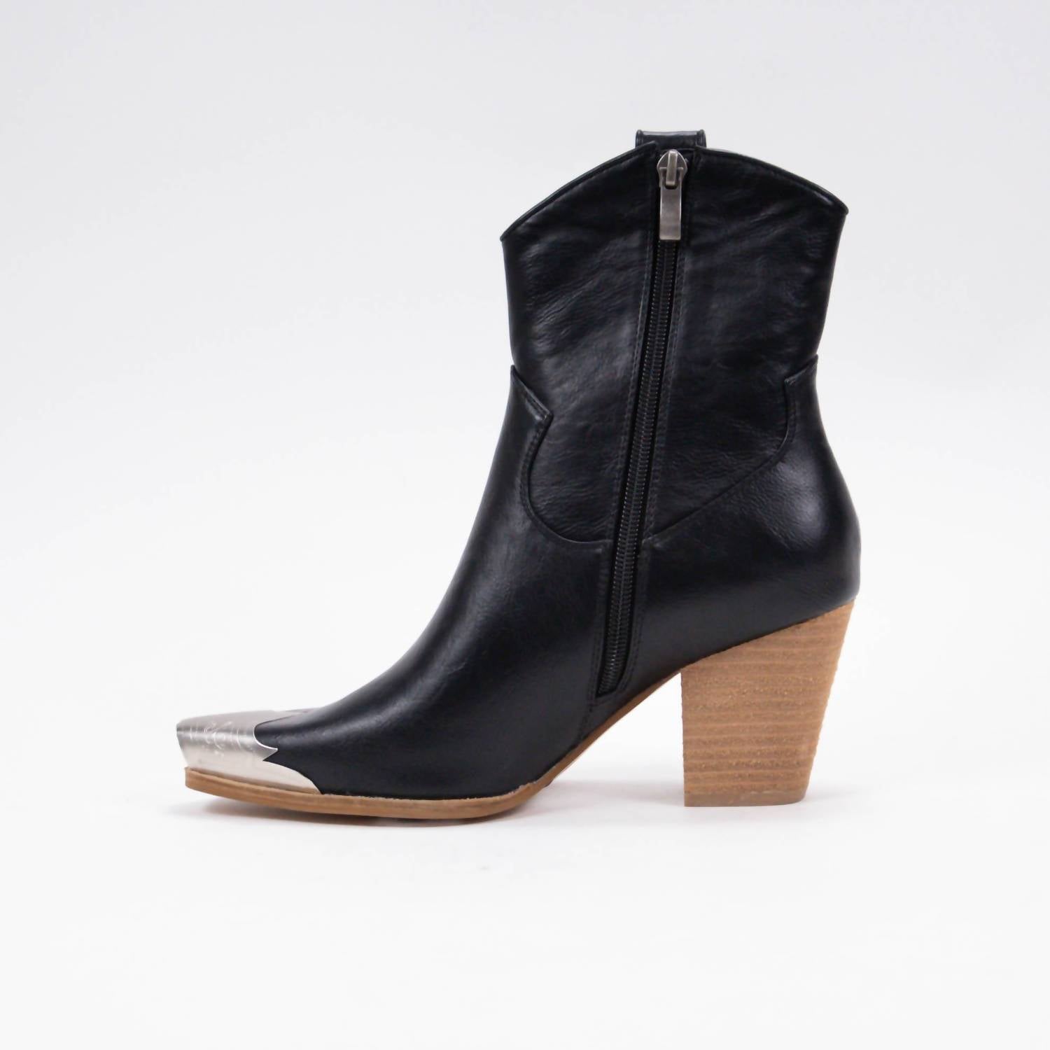 Say hello to the perfect, most versatile boot. The ankle height makes this style easily transition from day to night. Wear them with your favorite skinny jeans and tee for a more laid back look, or pair them with your favorite mini dress and jacket for a night out on the town.This Dakota Cowboy Boot features a metallic toe and mid block heel, combining style and comfort. Crafted from premium leather, it’s durable enough for everyday wear while adding a touch of glamour to any outfit.