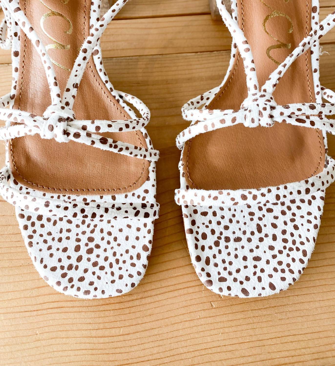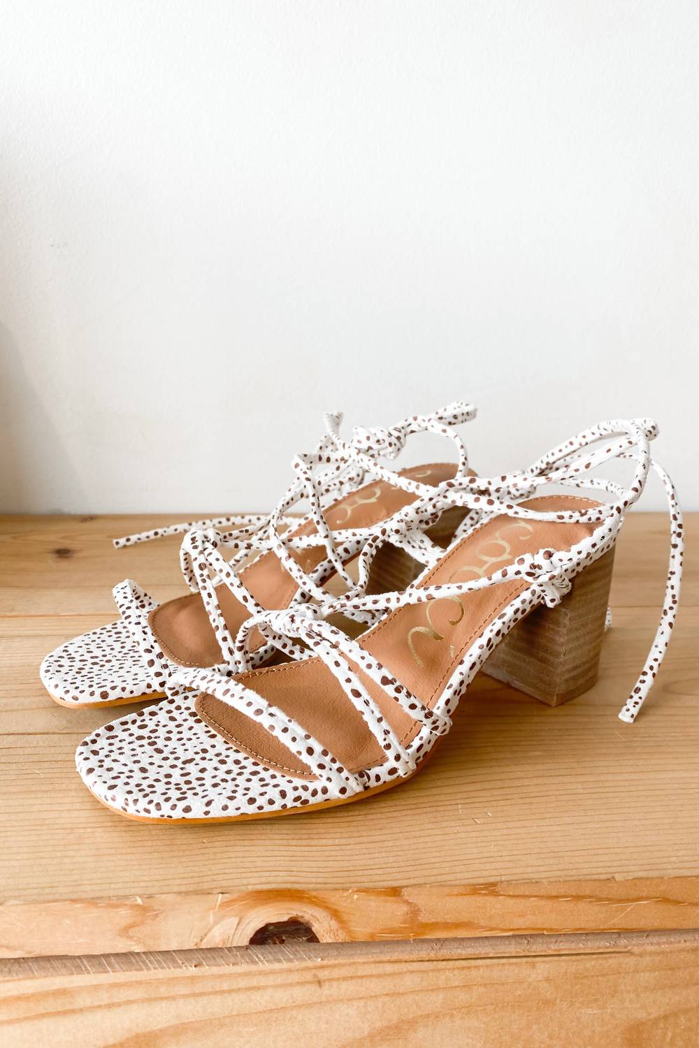 Step up your style with the Women's Soren Lace Up Heel by CCOCCI in a striking Camel Dots pattern. These heels feature a 3" block heel and an open toe design, crafted from luxe faux suede leather for a sophisticated look. The lace-up detail adds a modern twist to these mid-height beauties. Perfect for elevating both casual and dressy outfits.